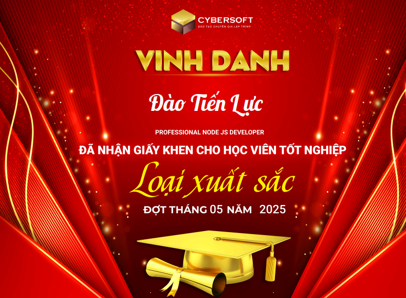 🎉 Hôm nay, CyberSoft trân trọng gửi lời chúc mừng đặc biệt đến những Học viên tốt nghiệp loại Xuất Sắc tháng 6 – những người đã không chỉ hoàn thành khóa học mà còn chinh phục nó bằng bản lĩnh, khát vọng và đam mê mãnh liệt với nghề lập trình.